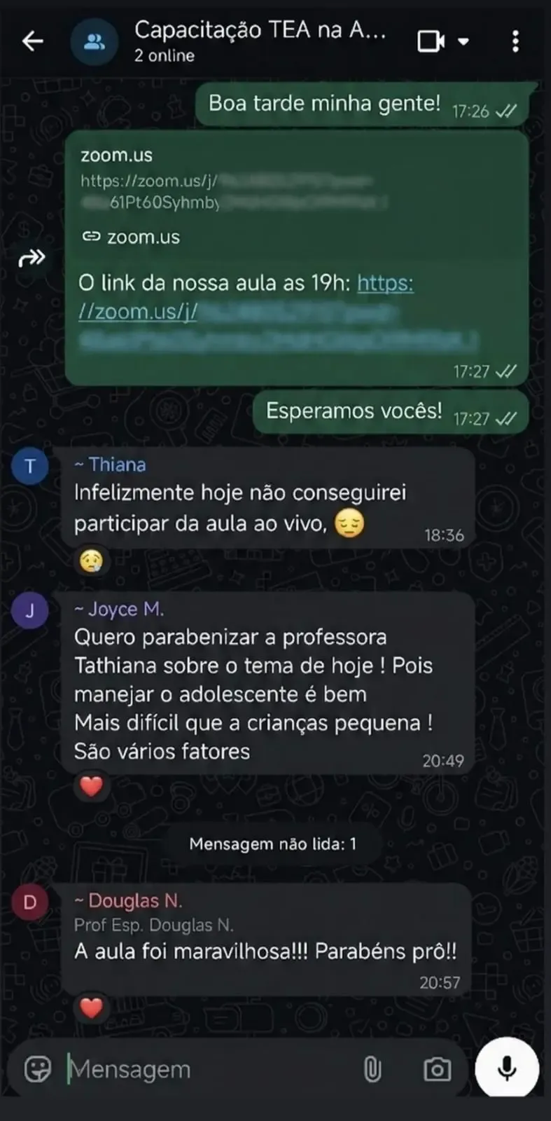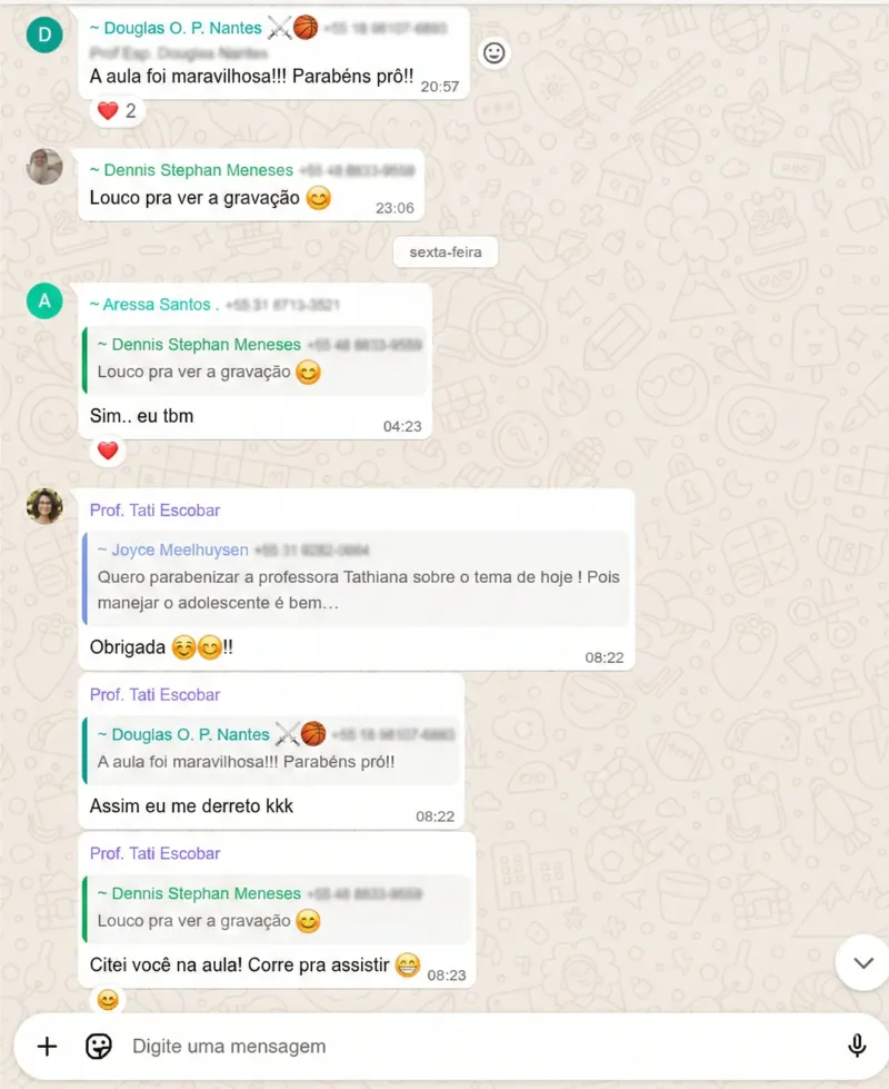 Espaço para tirar dúvidas, trocar experiências e não se sentir sozinha no processo.